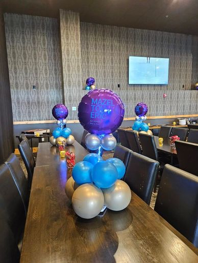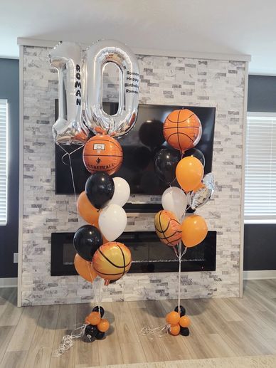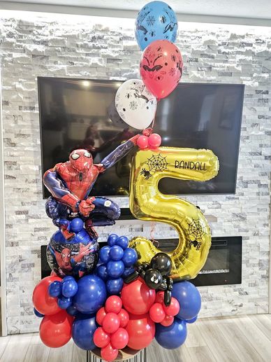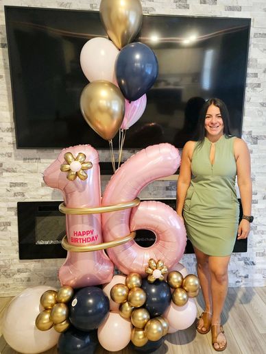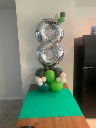 Our single number balloon bouquet can be color matched to event with added details including foil balloons to match your theme. Customize name included.